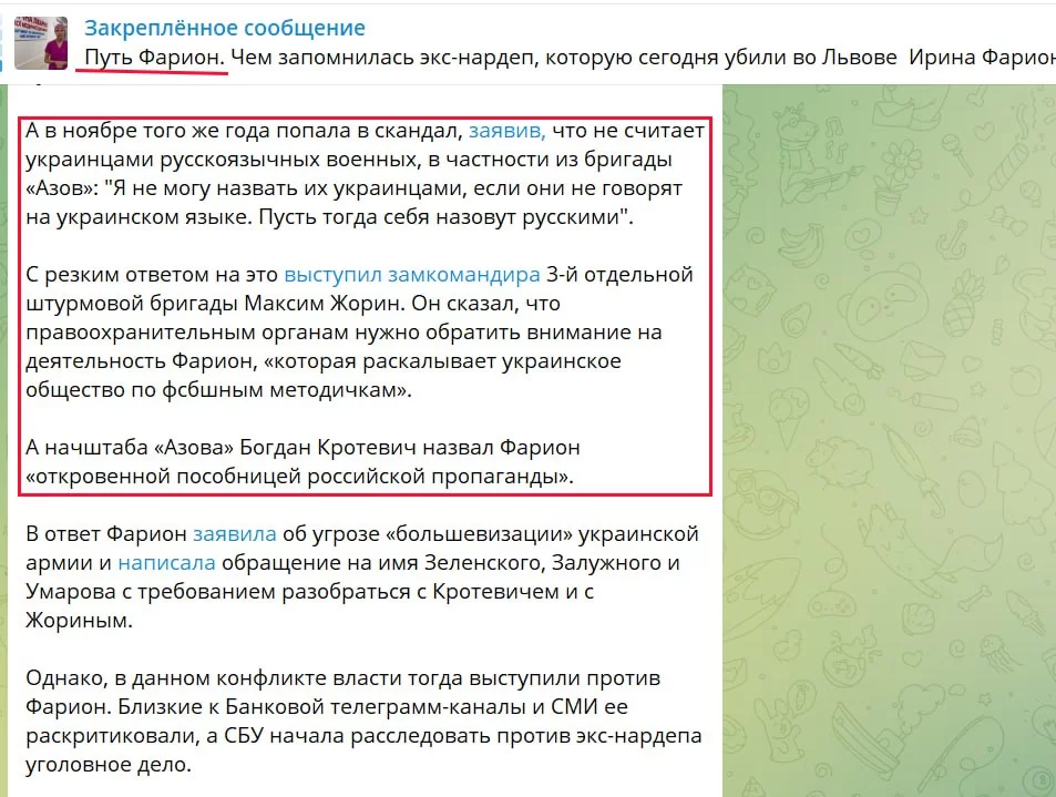 Конфликт о котором идет речь во втором скрине случился в ноябре 2023 года. После чего ей стали угрожать нацисты-"азовцы" (и постить наши каналы), а власть Зека, чтобы не потерять поддержку "выруси" начала ее травлю.