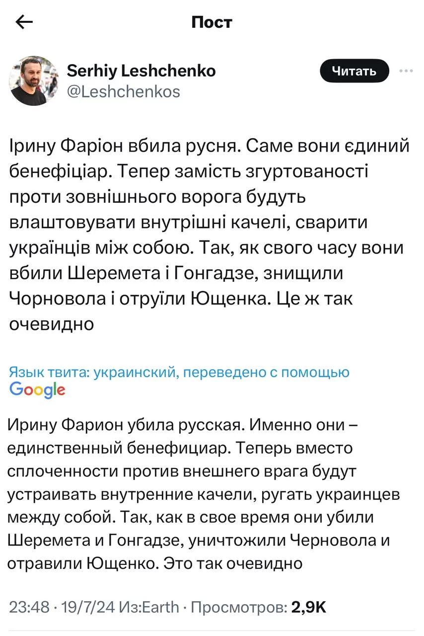 Кто убил Ирину Фарион: "это же очевидно..."