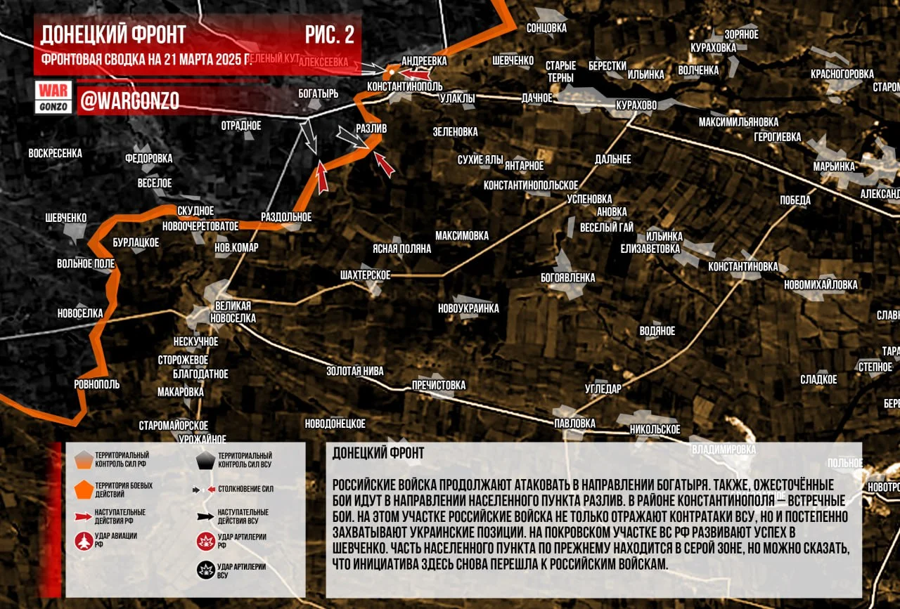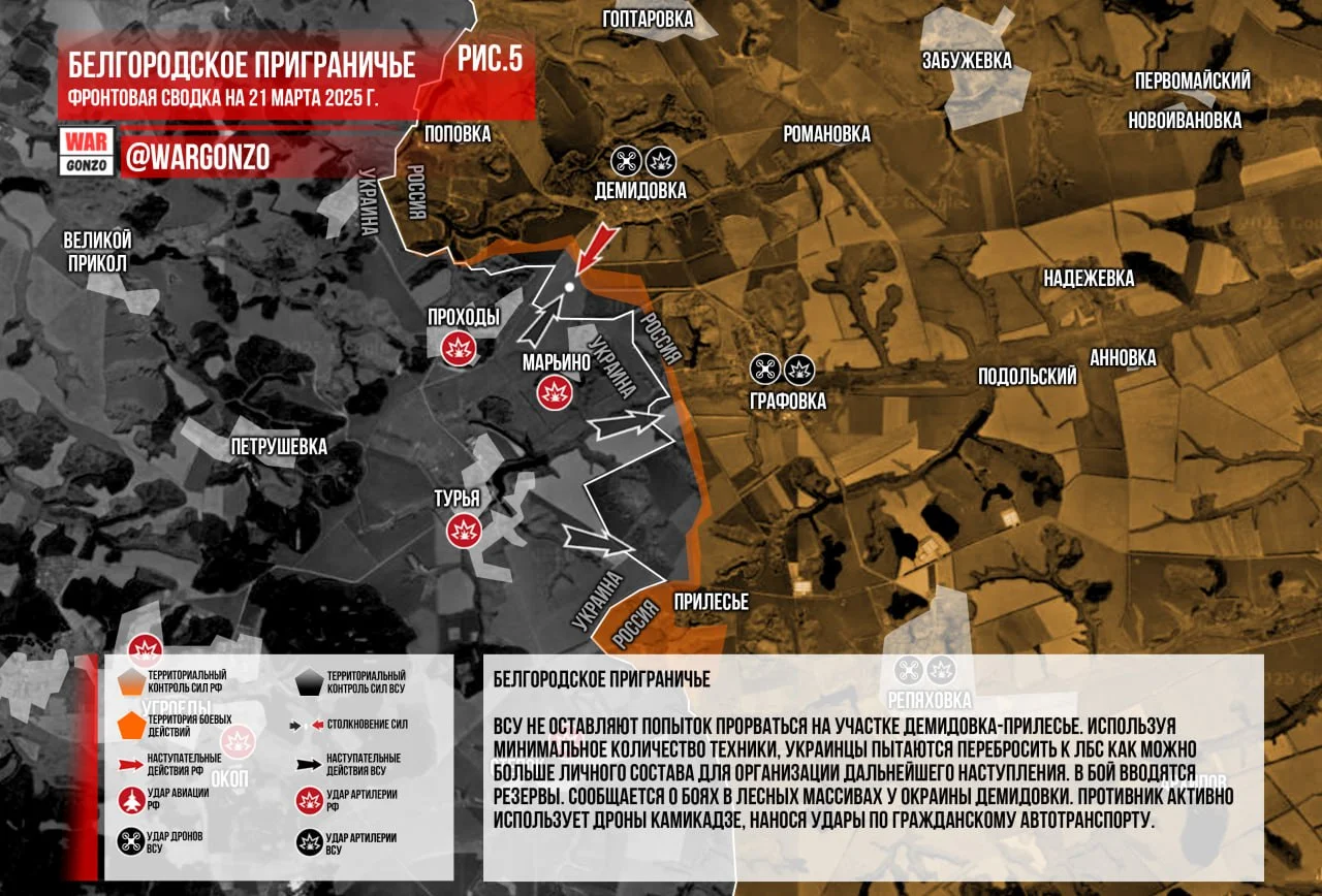 Фронтовая сводка на утро 21.03.2025